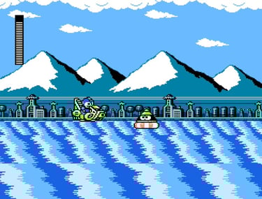 Mega Man 5 updates the charge shot a bit and it feels more useful as there are more groups of enemies. In general, Mega Man still controls well. Rush has been updated - the Rush Marine is gone and the Rush Coil gets a great new upgrade. Instead of being a trampoline, Rush jumps up as a platform, more like a double jump. This is fantastic and is way harder to mess up. In the place of the Rush Marine is the Super Arrow, which flies across the screen before sticking to a wall. You can stand on it both on a wall and in midair, and it can also be used to damage enemies. Mega Man 5 adds some really cool items that, while not absolute game-changers, make things feel fresh. Unfortunately, the Special Weapons are absolutely awful and the Rush Jet still feels annoying to use.
