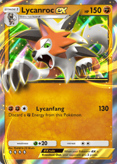 It has about the same power as Lycanroc, but its Fire typing gives it more options. This card works fairly well with Moltres ex.