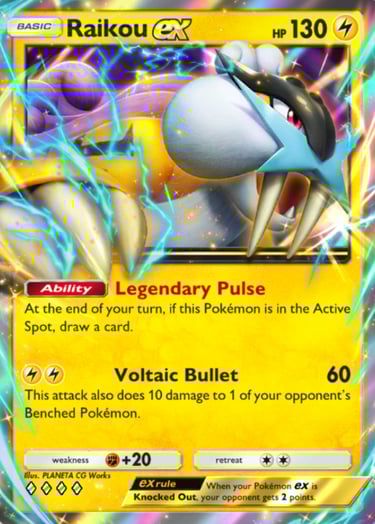 Although its damage potential is significantly lower, Raikou ex is better than Entei since it uses Lightning Energy. Raikou can be a starting attacker that sets up Magneton, Zeraora, and friends.
