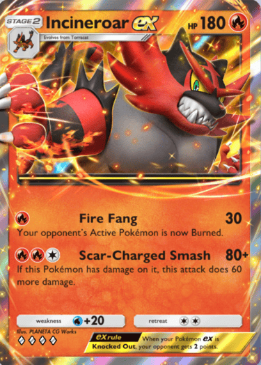 Incineroar is a very scary Stage 2 attacker since you can't chip away at it - unless you want to take 140 damage for three Energy. Unfortunately, it can't build up to attack as fast as Charizard.