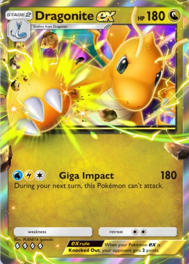 Rayquaza ex's Draco Meteor is much easier to pull off than Dragonite, since it's a Normal-Type Basic. However, it has less HP and gives 2 points.