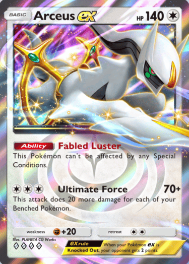 Arceus has a solid attack that can take any Energy, allowing you to fit in support Pokémon like Crobat and Carnivine. The Ability is okay, but it means you're going to have to attach manually, which is awkward.