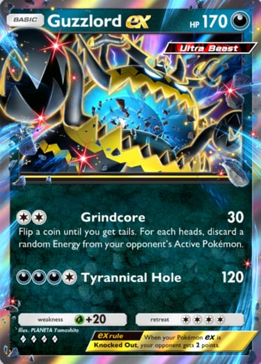 Guzzlord might be the scariest card in the game. An absolutely brutal first attack and Lusamine to charge up the second means that you have to play perfectly to take Guzzlord down. Bad flips keep it from the top.
