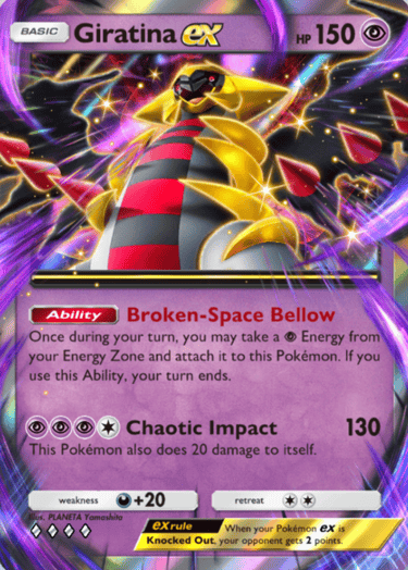 Giratina might be the best card in the game. The attack is too costly by itself, but the Ability allows it to fit into almost any deck. In a game where every card and attachment matters so much, being able to effectively double your speed at the start of a game is too good to pass up. An extremely low-maintenance 130 damage means Giratina pops up in all kinds of decks.