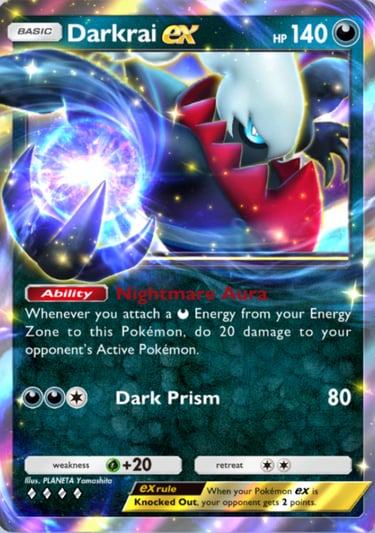 Even though Darkrai's stats aren't the absolute best, the pressure that you can put on your opponent from Nightmare Aura is too much to ignore, especially with Rocky Helmet. When used in combination with low-maintenance attackers, Darkrai can bring cheap, low-damage attacks in range of one-shot Knock Outs.