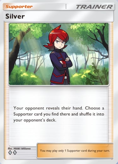 When I first saw this card, I didn't think it would be great, but it's actually very useful in pretty much every deck. Just like Dark Pendant, Silver lets you eliminate your opponent's resources early on, but it allows you to choose what card to get rid of. While you can only choose Supporter cards, these are typically the most important cards to start off with anyway. It can be useful in the late game as well to get rid of game-ending Supporters like Cyrus or Lusamine. This card will see similar use to Mars, appearing as a one-of in most decks.