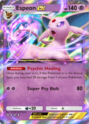 Espeon ex is the perfect partner for the already popular Sylveon ex. Of course, they both evolve from Eevee, meaning you only need two Eevee and two Eevee ex for Basics. Espeon does slightly more damage than Sylveon, allows you to only run Psychic Energy, and makes it easier for the single-point Sylveon to do big damage. On top of all that, Espeon ex also provides built-in healing on top of the Eevee Bag item card that was released in Eevee Grove. This is a great example of a card that isn't inherently good but does very well with the right teammates.