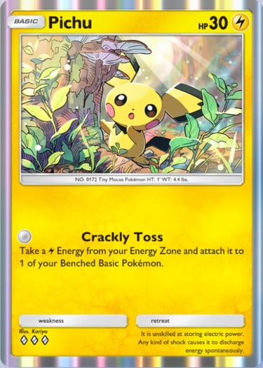 Pichu gives your opponent an easy target and uses your first attack to get one extra Energy - it seems like a bad deal at first. However, just like in the case of Dark Pendant, one extra resource makes a big difference in this game. If you only keep Pichu in the Active for one turn, it probably won't be Knocked Out, since it has no Weakness or Retreat Cost. Even if Pichu does get Knocked Out, pairing it with strong single-point cards like Oricorio and Silvally offsets this. Magby isn't as good since it doesn't fit as well with any popular Fire-Types.