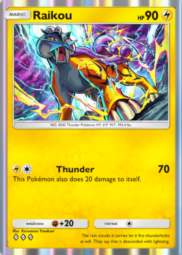Raikou is a decent single-point basic that is useful for Lightning decks that don't have another way of dealing with Oricorio in one hit. Thanks to recent Lightning support cards Zeraora, Pichu and Elemental Switch, Raikou doesn't take up important Energy attachments. With 90 HP, 70 damage for two Energy and only one Retreat, it's clear that Pokémon TCG Pocket has had quite a bit of power creep. Poor Farfetch'd doesn't stand a chance anymore.